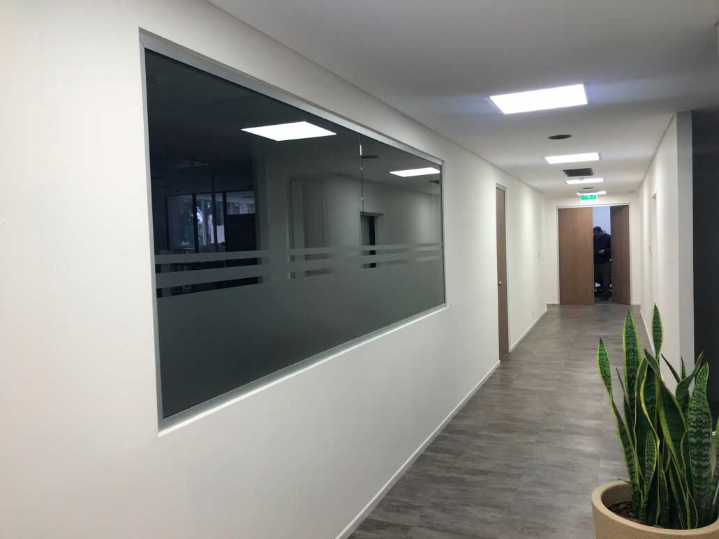 • Provisión y colocación de tabique de perfiles de vidrio Profilit aproximadamente 10mts2.