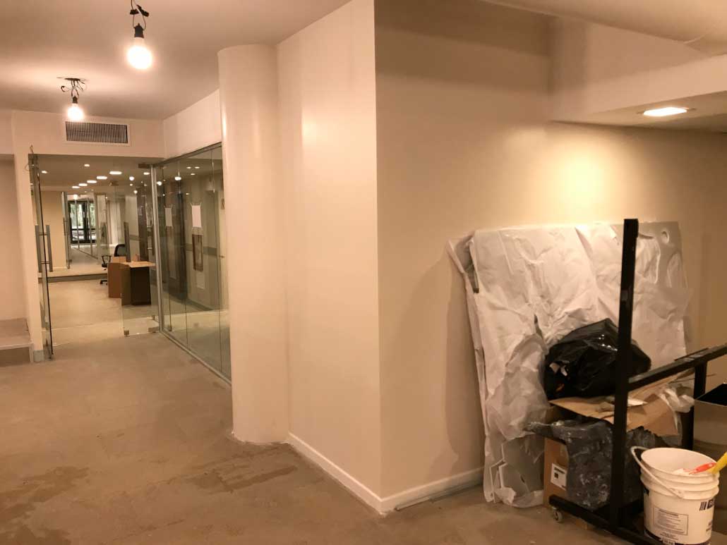 • Enduido de paredes, aplicación de una mano fijador y dos manos de pintura satino en muros existentes y tabiques de placas de yeso nuevo aproximadamente 400mts2.