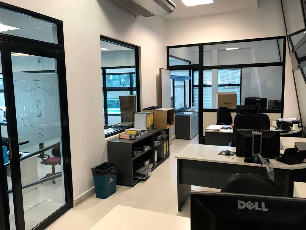 - Fabricación y colocación de tabiques de oficina de aluminio negro línea pesada según nueva disposición aproximadamente 60mts2.
