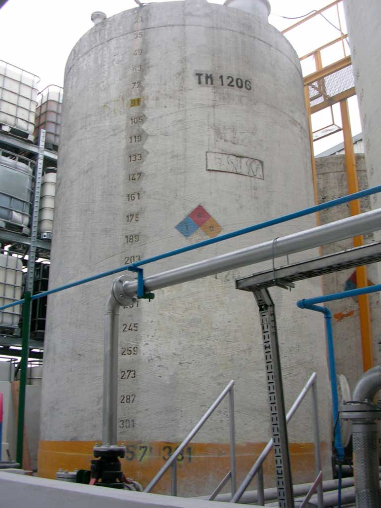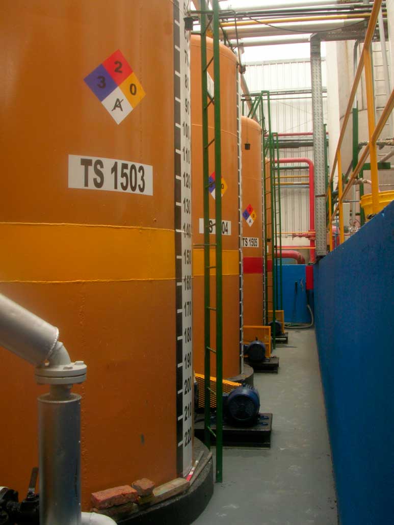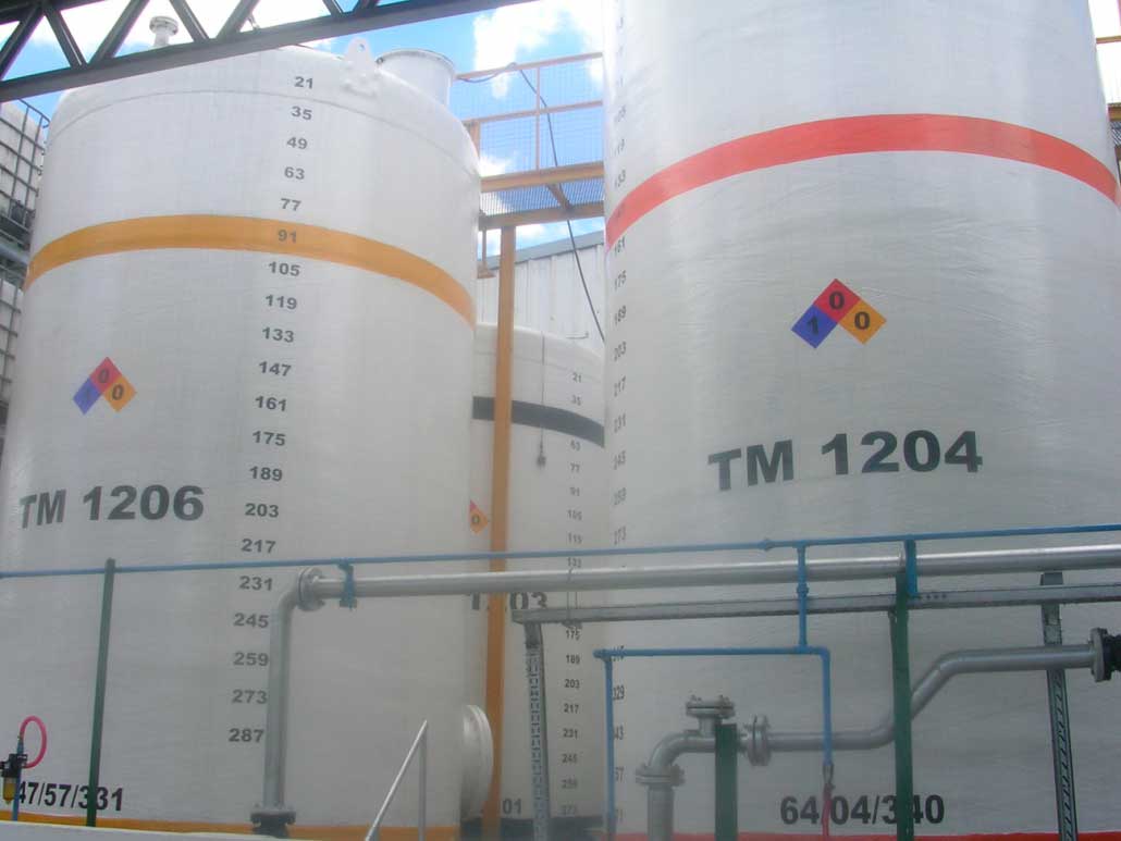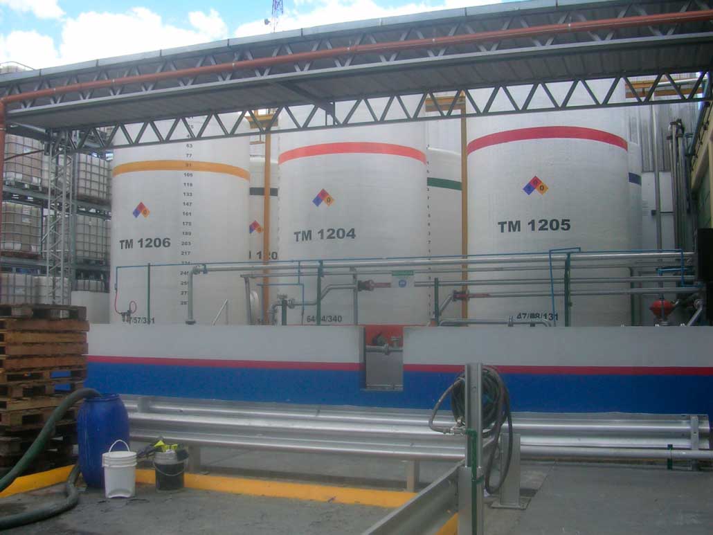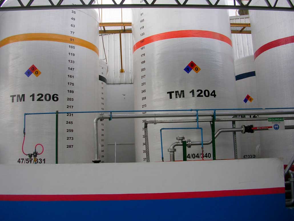 Se realizó a mediados del año 2007 la limpieza y aplicación de pintura en 6 tanques de fibra de vidrio de materia prima. Los trabajos contemplaban: