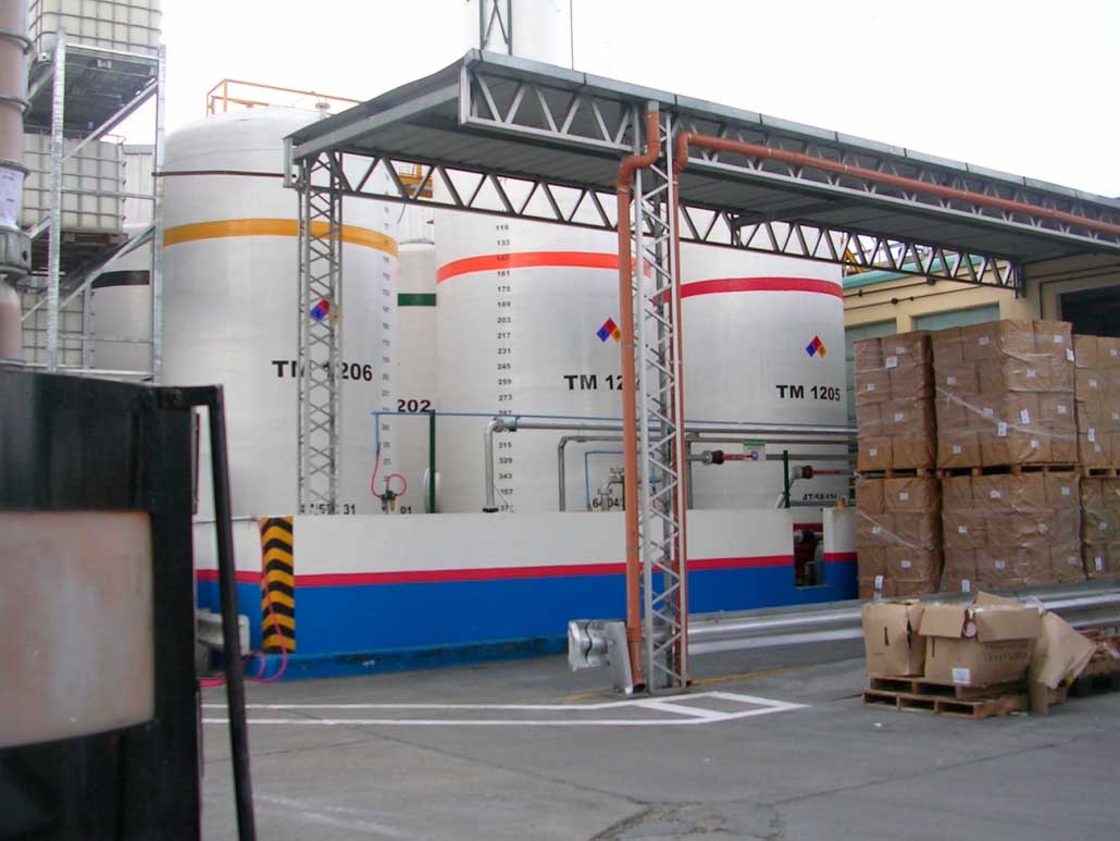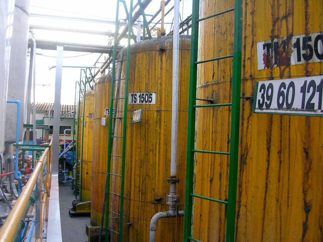 A continuación se realizó a fines del año 2007 el mismo trabajo en otro sector, la limpieza y aplicación de pintura en 5 tanques metálicos de materia prima los siguientes trabajos: